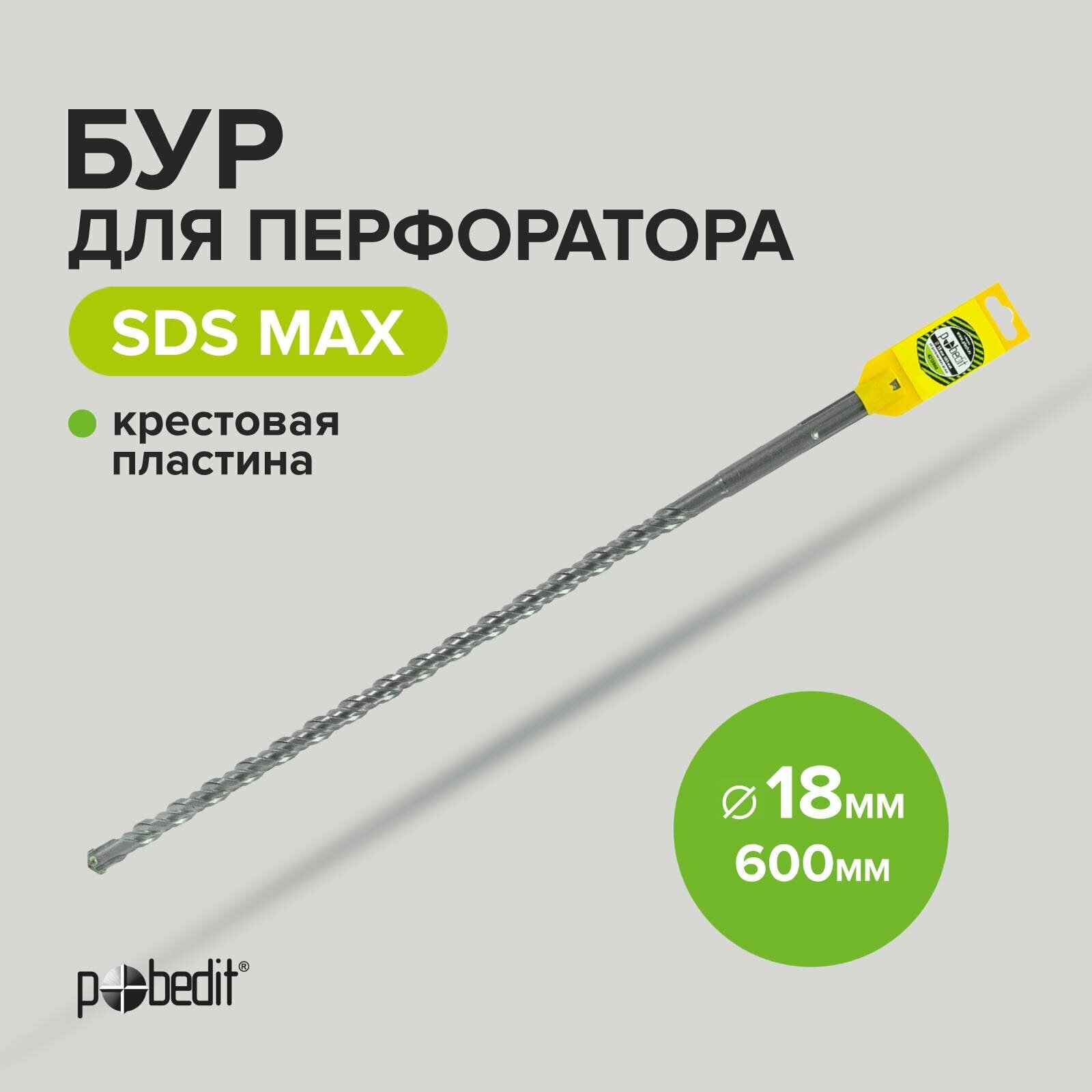 Бур для перфоратора по бетону SDS-MAX 18х600 с крестовой пластиной Pobedit: сравнение цен, характеристики, фото, актуальное наличие и цены.