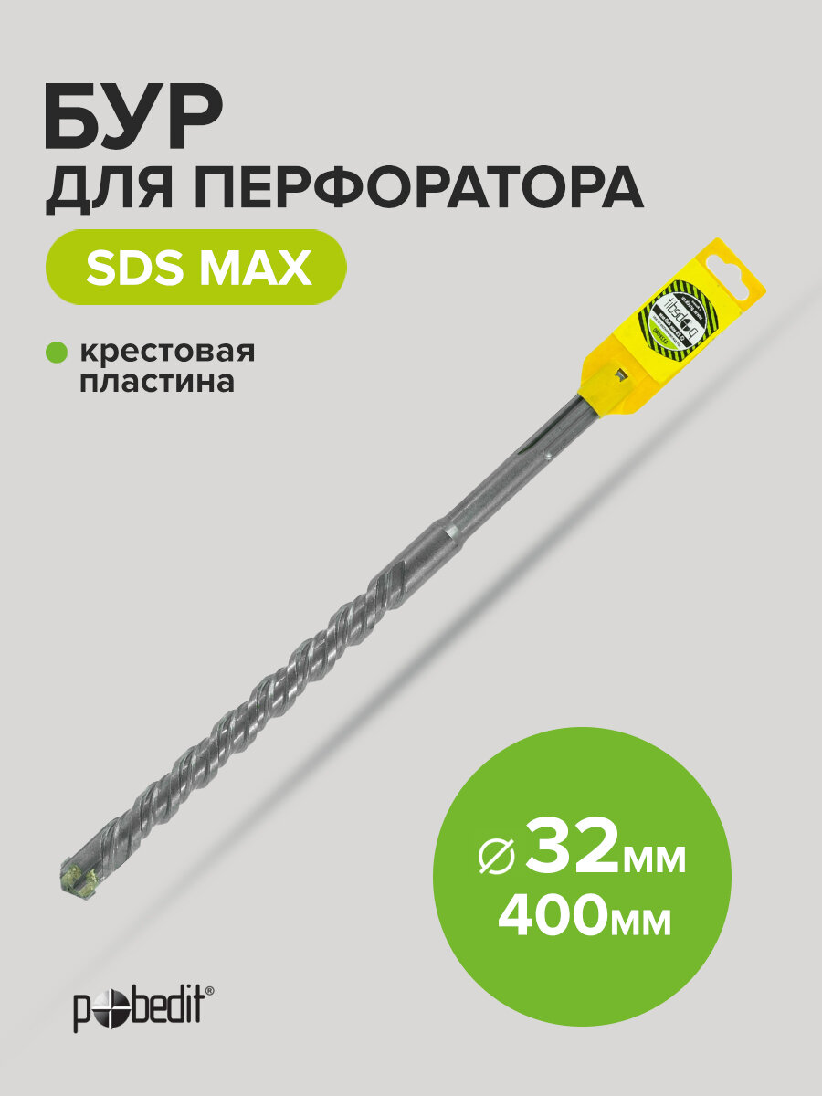 Бур для перфоратора по бетону SDS-MAX 32х400 с крестовой пластиной Pobedit: сравнение цен, характеристики, фото, актуальное наличие и цены.