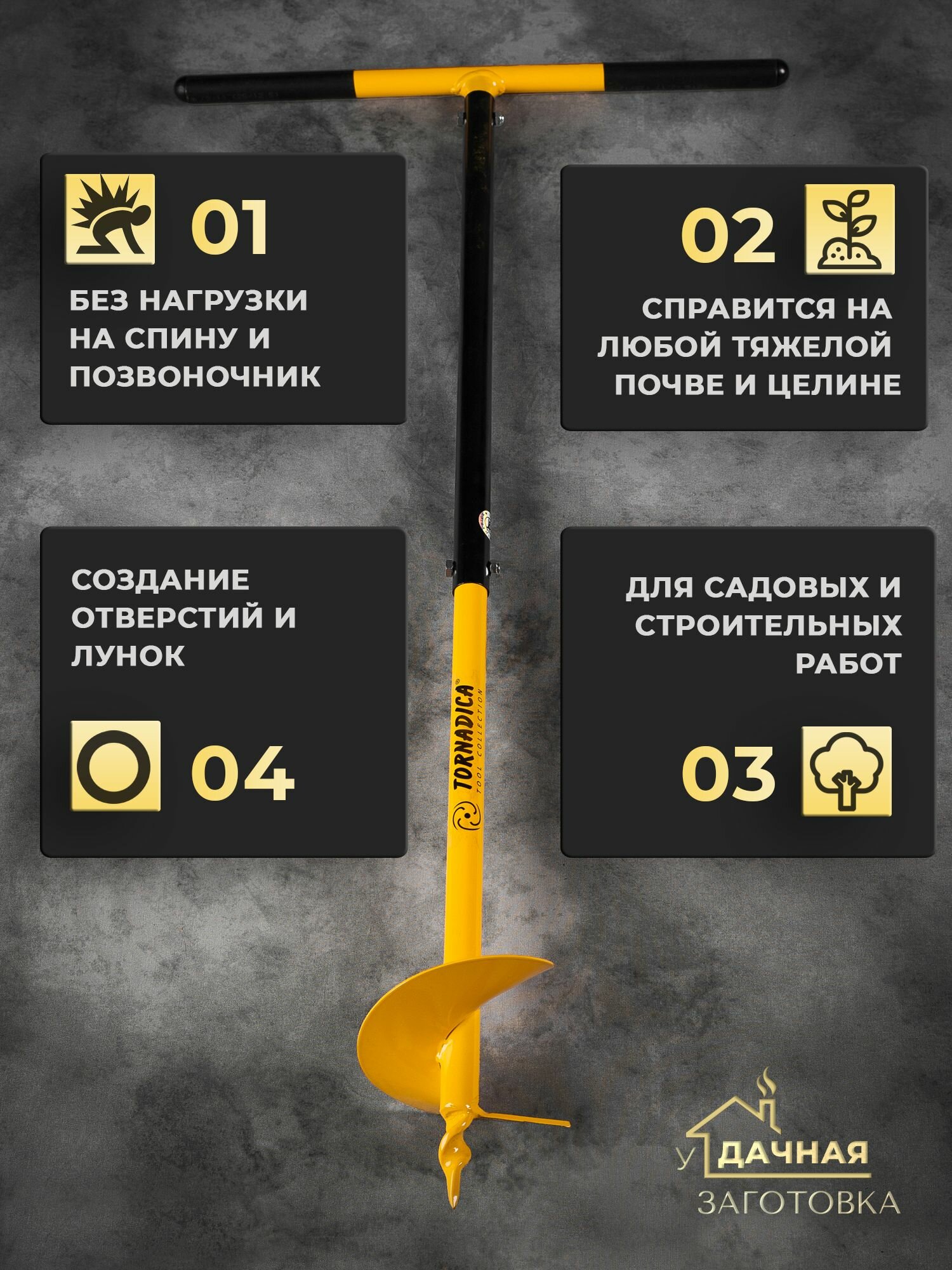 Выбирая бур Tornadica Profi Mini, вы получаете инструмент, который обеспечивает высокую производительность и долговечность. Этот бур стал выбором множества профессиональных садоводов и строителей благодаря своей надежности и удобству использования.