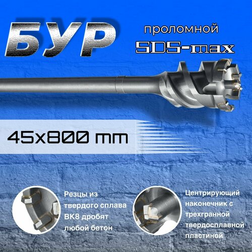 Бур проломной предназначен для ударного сверления отверстий в бетоне, кирпиче, камне перфоратором системы SDS-max.
