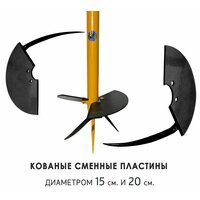 Комплект поставки включает в себя два набора сменных лезвий диаметром 150 и 200 мм для бурения лунок разных размеров. Высококачественная, кованая и закаленная сталь, используемая в рабочей части бура, обеспечивает высокую точность и производительность.