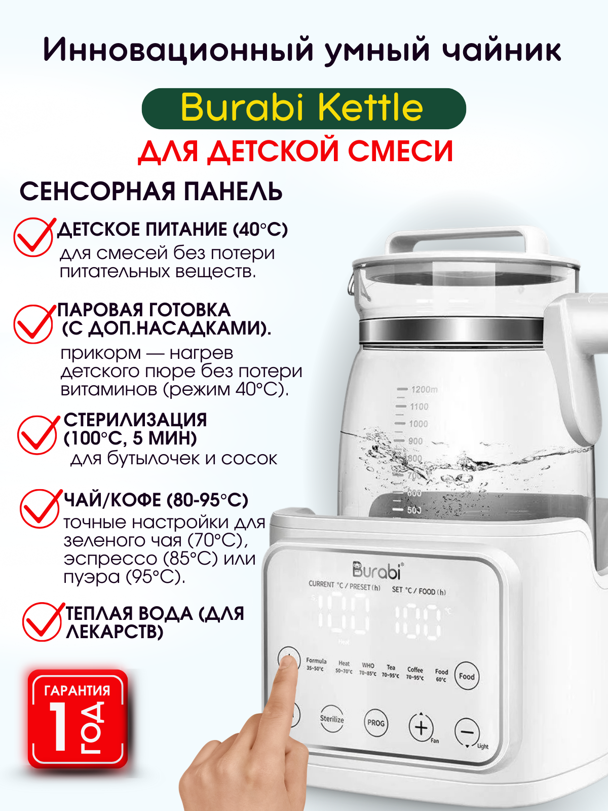 Купить Burabi Термостатический электрический чайник с точным контролем температуры и системой охлаждения, Подогреватель бутылочек для бутылочек с подогревом для детского питания Burabi с доставкой по всей России.