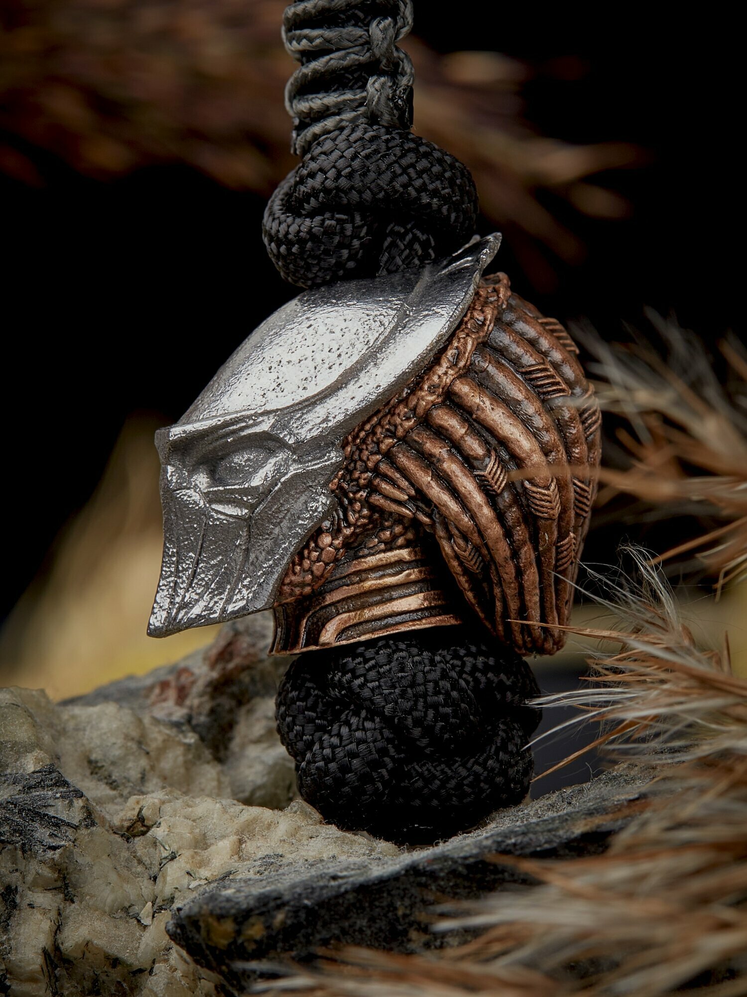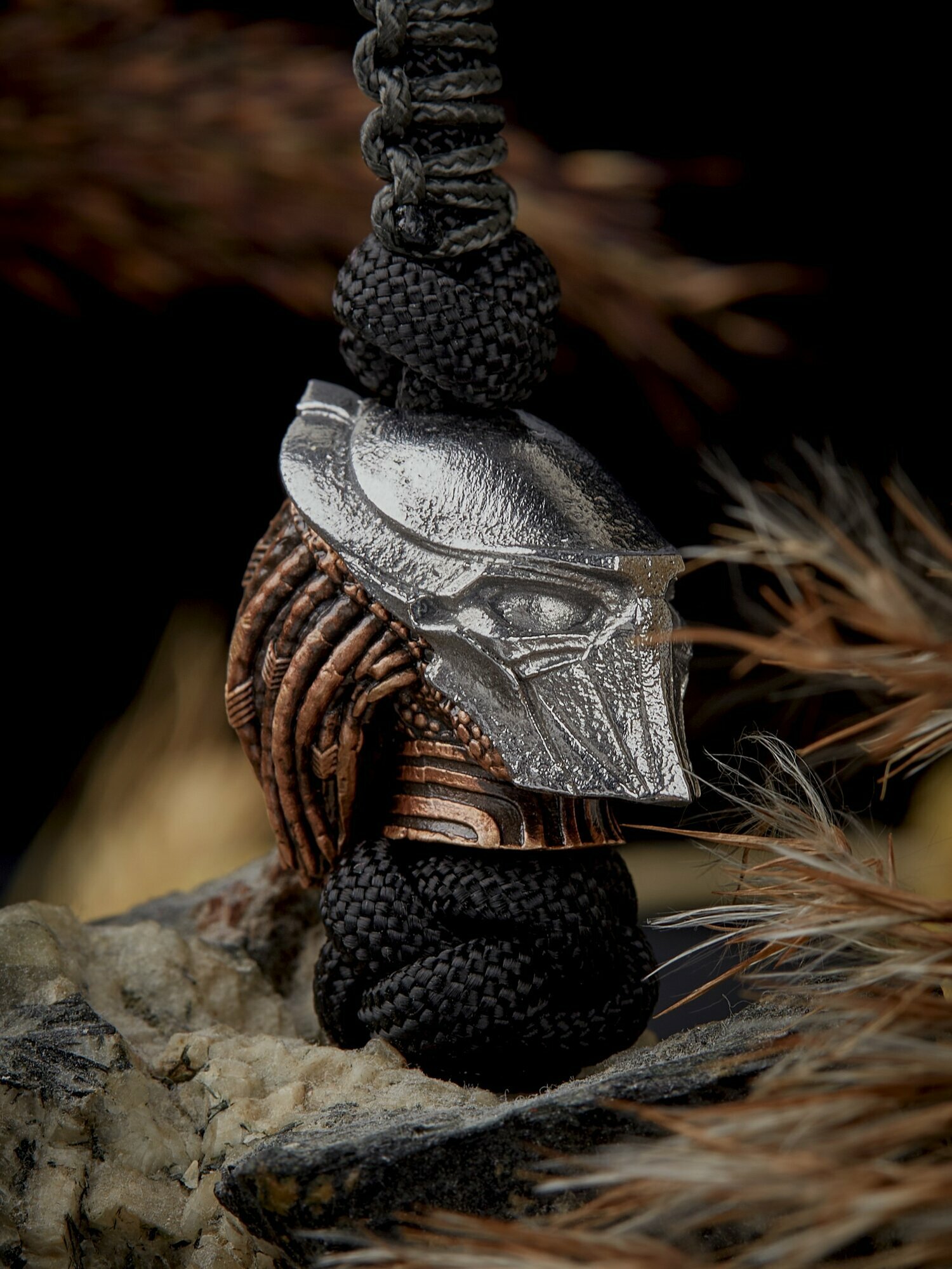 Бусина на темляк "Хищник магнит" от бренда Apanasov – стильный и практичный аксессуар для тех, кто ценит качество и оригинальный дизайн. Основа бусина отлита из бронзы, а съемная магнитная маска изготовленный из прочной стали. Темляк оснащен надежным кольцом-карабином, позволяющим удобно крепить его к ключам, сумке или ножу. Он станет не только полезным, но и стильным дополнением к вашему образу, демонстрируя вашу индивидуальность и любовь к фантастическим мирам. Бусина отправляется вместе с паракордом.