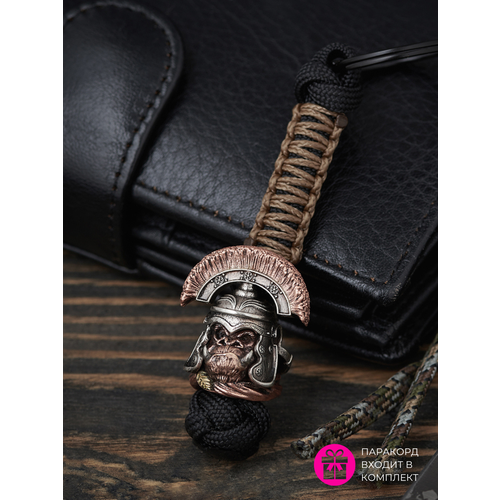Бусина на темняк выполнена из нескольких видов сплавов - шлем из нейзильбера, морда, плащ и перья из бронзы, лавровый лист из латуни. Темляк ручной работы сплетен нашими мастерами из прочного шнура паракорда черного цвета. Декорирован бусиной ручной работы. Тип узла "бриллиантовый" или "темлячный" отличается своей прочностью. Темляк - отличный подарок любому мужчине, оригинальный брелок для ключей или сумки. Охотники, туристы, любители активного отдыха могут использовать его по прямому назначению - как аксессуар для ножа. Длина изделия 10 см (кольцо-карабин + паракорд + бусина). Размер бусины: 2х2 см