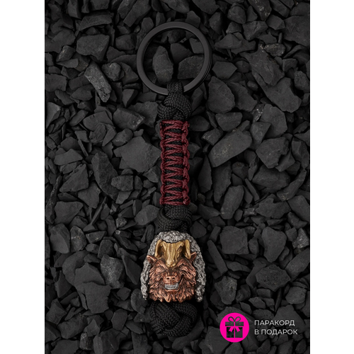 Бусина на темняк выполнена из трех видов сплавов. Волк из бронзы, шкура из нейзильбера, овечка из латуни. Темляк ручной работы сплетен нашими мастерами из прочного шнура паракорда черного цвета. Декорирован бусиной ручной работы. Тип узла "бриллиантовый" или "темлячный". Темляк - отличный подарок любому мужчине, оригинальный брелок для ключей или сумки. Охотники, туристы, любители активного отдыха могут использовать его по прямому назначению - как аксессуар для ножа. Длина изделия 10 см (кольцо-карабин + паракорд + бусина). Размер бусины: 2х2 см.