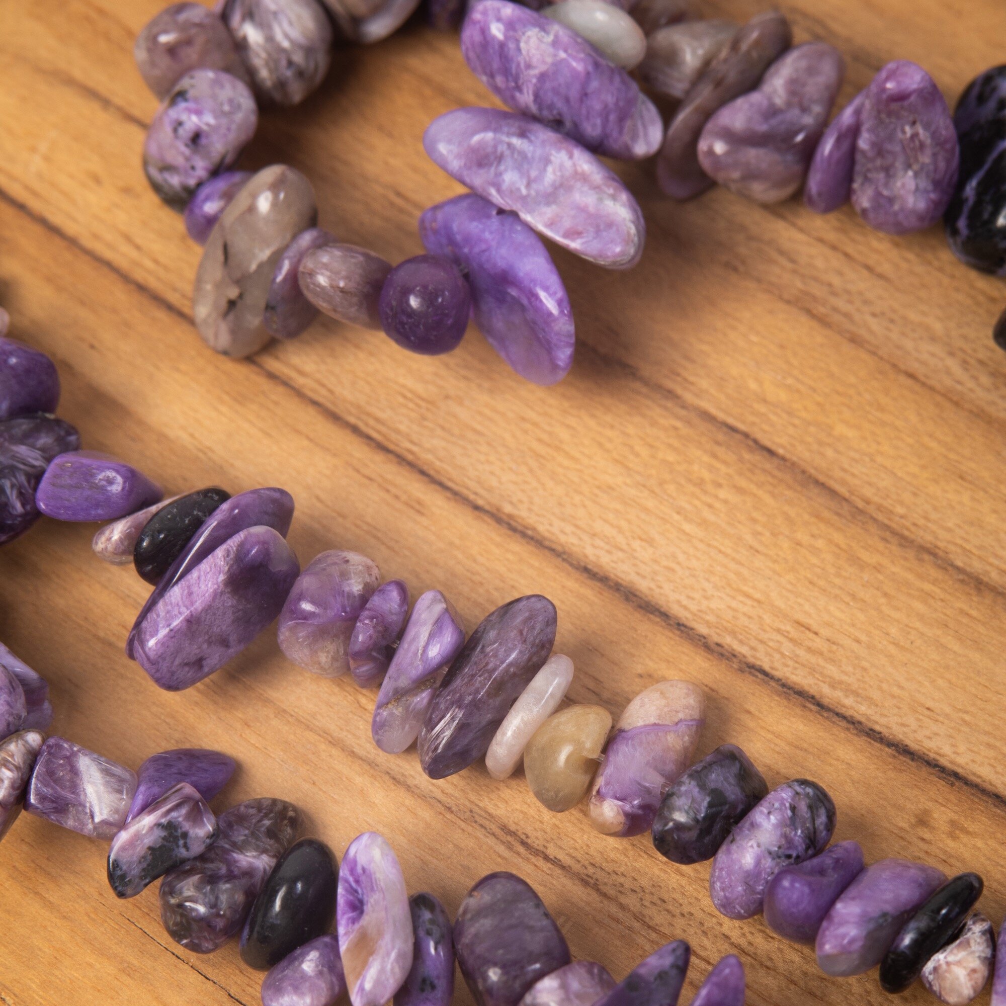 Купить Бусины из натуральных камней Crumble 39 см, чароит 4-7 мм, для рукоделия и создания браслетов, колье и бус с доставкой по всей России.