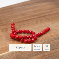 Купить Бусины из натуральных камней круглой формы Sphere 6 мм коралл 34 шт. для рукоделия и создания браслетов, колье и бус с доставкой по всей России.