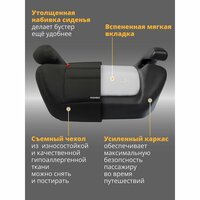Съемный чехол авто-бустера выполнен из износостойкой гипоаллергенной ткани, его можно снять и постирать.
