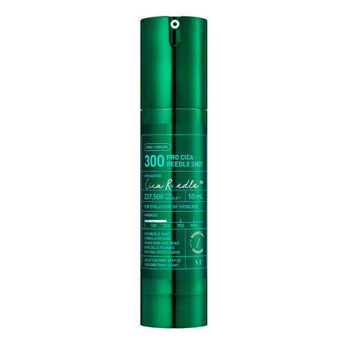 Интенсивный бустер с микроиглами для чувствительной кожи VT Cosmetics Pro Cica Reedle Shot 300 обеспечивает деликатное отшелушивание и восстановление рогового слоя эпидермиса, восполняет дефицит влаги.