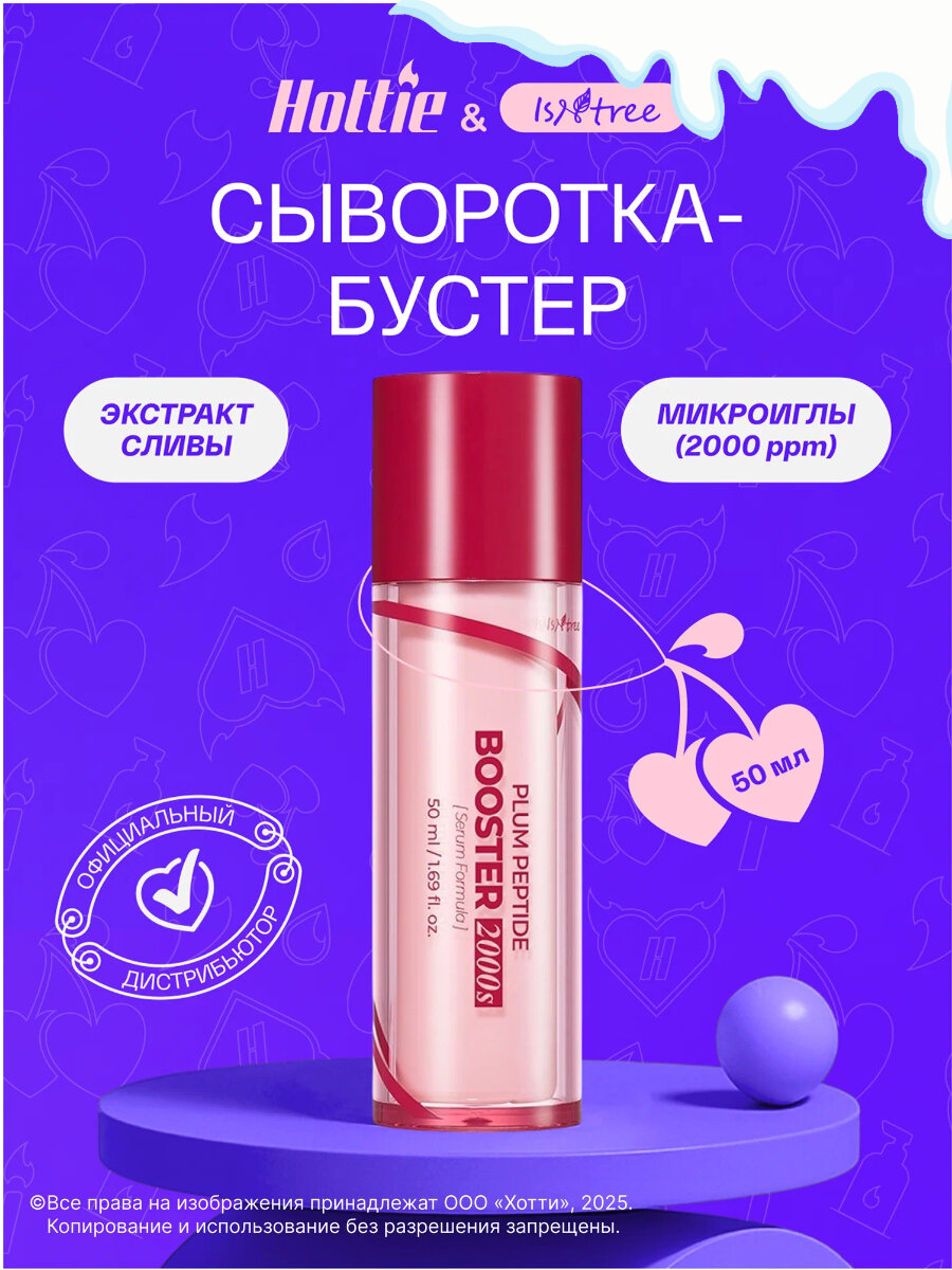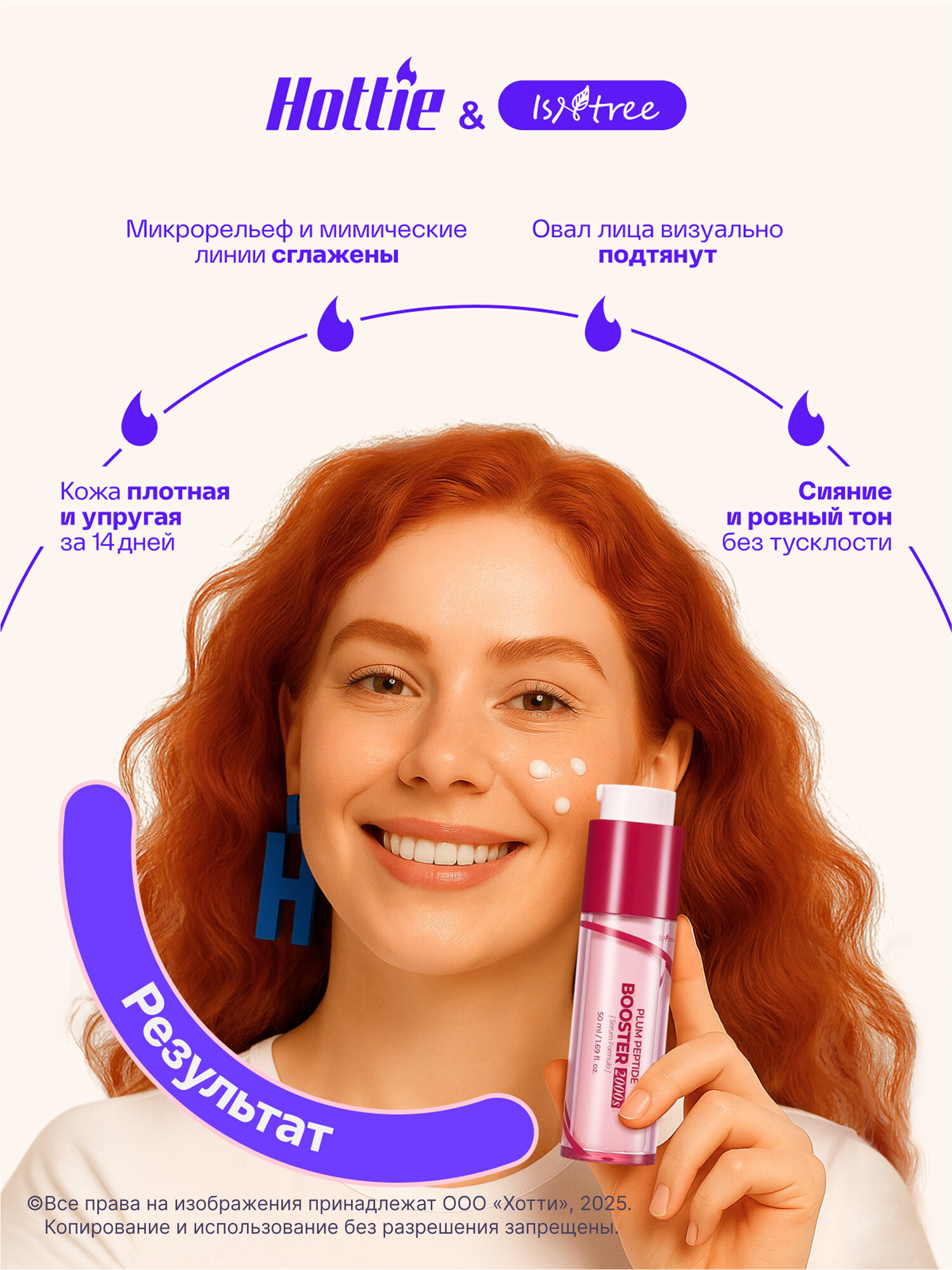 Бустер-сыворотка IsNtree Plum Peptide Booster 2000s разглаживает рельеф кожи, сокращает видимость морщин, сужает поры, выравнивает тон и уменьшает видимость пигментации.