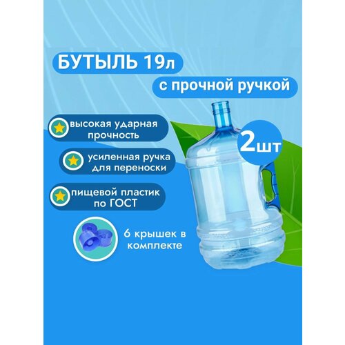 Купить Бутыль 19 литров для воды с прочной ручкой 2 шт + 6 пробки в комплекте с доставкой по всей России. Бутыль 19 литров для воды с прочной ручкой 2 шт + 6 пробки в комплекте: сравнение цен, характеристики, фото, актуальное наличие и цены.