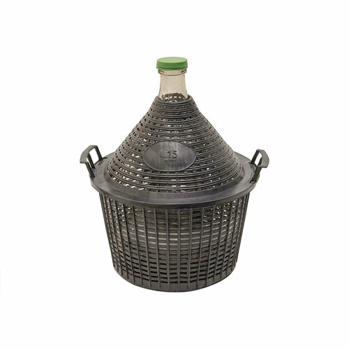 Бутыль в пластиковой корзине 15 литров используется для хранения или транспортировки вина, самогона и других напитков. Стеклянная бутыль защищена пластиковой корзиной, имеющей ручки для переноски. Кроме того, пластиковая корзина способна защитить бутыль не только от повреждений, но и от ультрафиолета. Бутыль изготовлена из качественного, экологичного стекла. Комплектуется пластиковой крышкой.