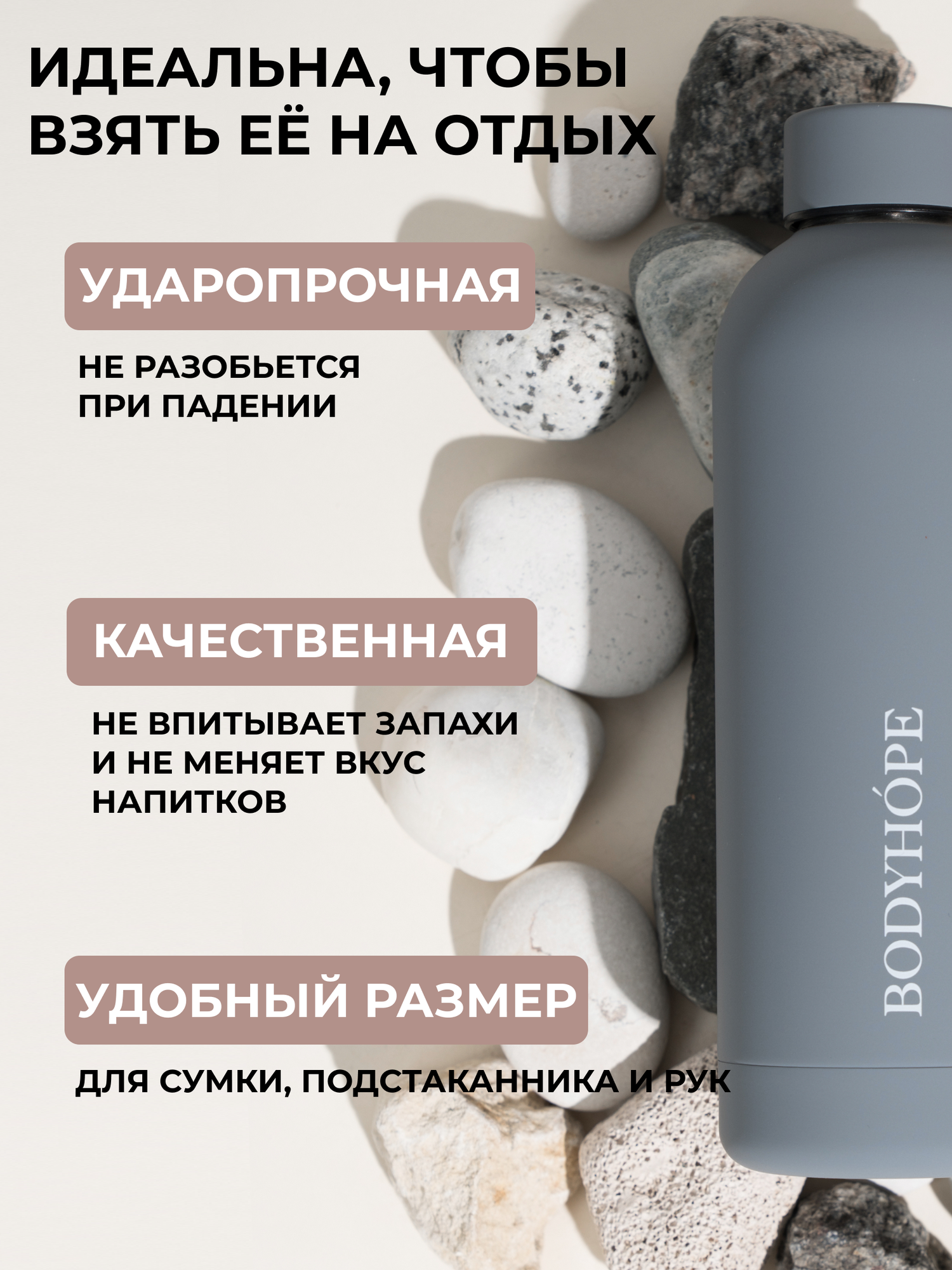 Купить Спортивная бутылка для воды, термобутылка BODYHOPE, 500мл, серая с доставкой по всей России.