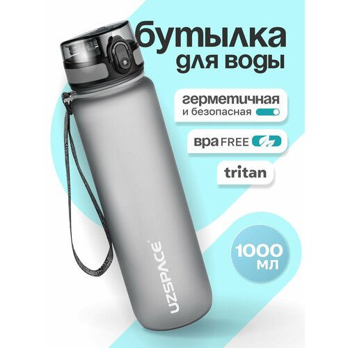 Бутылка для воды спортивная UZSPACE из Тритана, серая, 1000 мл, с герметичной крышкой, BPA Free, для спорта и фитнеса, детская в школу