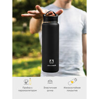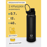 Купить Бутылка термос для воды 0.7 л большая/Арктика 708 черный/спортивная с двумя крышками с доставкой по всей России.