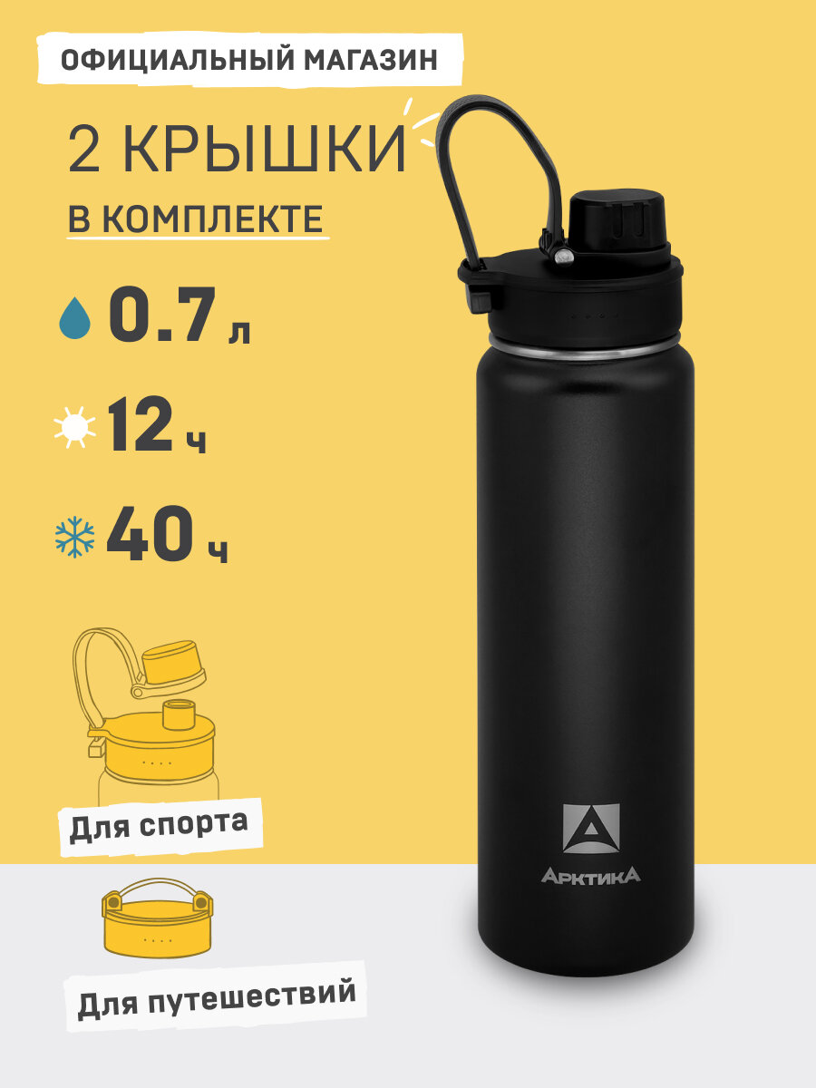 Бутылка термос для воды 0.7 л большая/Арктика 708 черный/спортивная с двумя крышками: сравнение цен, характеристики, фото, актуальное наличие и цены.