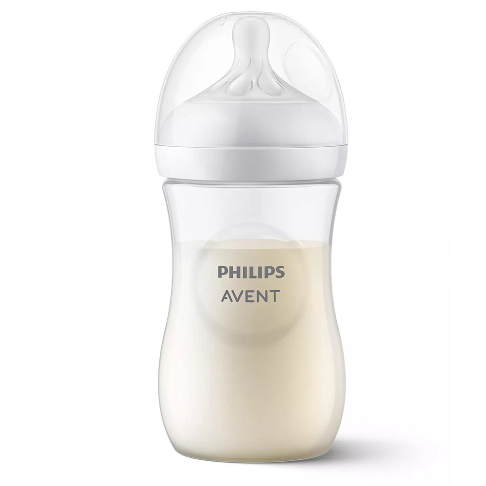 Бутылочка для кормления Philips Avent Natural Response SCY903/01 поддерживает особый темп питья младенца. Соска бутылочки ощущается ребенком и работает как мамина грудь, подстраиваясь под ритм сосания именно вашего малыша. Повторение естественной физиологии процесса делает кормление максимально близким к грудному. Позволяет легко сочетать грудное вскармливание и кормление из бутылочки. Позволяет совмещать кормление грудью и из бутылочки. Бутылочка Natural Response: все лучшее для кормления вашего малыша от бренда №1 в мире¹. В комплекте 1 бутылочка 260 мл, 1 соска со средним потоком 1 мес + со встроенным антиколиковым клапаном, колпачок. Естественный захват – как при кормлении грудью. Мягкая и гибкая соска с широким физиологичным основанием для естественного захвата малыша и комфортного кормления малыша. Соска, которая не только ощущается, но и работает как мамина грудь. Соска бутылочки разработана так, чтобы при кормлении малыш сосал, глотал и дышал в его собственном ритме, как при естественном процессе кормления грудью. Благодаря особой конструкции молоко не выделяется из соски без активного сосания малыша. 89% мам подтверждают, что дети с легкостью переходят от груди на бутылочку². Защищает от возникновения колик и дискомфорта. Встроенный антиколиковый клапан не позволяет воздуху попадать в животик малыша при кормлении, таким образом снижая вероятность возникновения колик и дискомфорта. Выберите соску, подходящую вашему малышу. Все дети требуют особого подхода при кормлении и держат комфортный им темп. Соски Philips Avent разработаны с разной скоростью потока, чтобы вы могли найти оптимальный вариант для вашего малыша. Все соски Natural Response изготовлены из мягкого силикона. 96% случаев, когда ребенок принимает соску Natural Response³. Конструкция соски позволяет избежать случайное проливание молока. Благодаря специальной конструкции соски молоко не выделяется, пока ребенок не приложит усилия, то есть подается только когда ребенок уже начал пить. Это поможет избежать проливания молока дома и на улице. Совместимость с изделиями линейки Philips Avent. Соски и бутылочки серий полностью совместимы. Мы рекомендуем использовать соски соответствующей серии, так как соски серий отличаются, а у ребенка уже может быть сформулирована привычка питья. Соски Natural Response совместимы с серией Anti-Colic только при использовании фиксирующего кольца от бутылочки Natural Response. Мы не рекомендуем комбинировать соски серий, так как они отличаются принципом работы и формой, а у ребенка уже может быть сформулирована привычка питья. Удобно держать даже маленькими ручками. Эту эргономичную бутылочку удобно держать под любым углом для максимального комфорта при кормлении. Удобно для вас и вашего малыша. Легко использовать, мыть и собирать. Благодаря широкому горлышку бутылочку удобно мыть и наполнять. Небольшое количество деталей позволяет быстро собрать и разобрать бутылочку. Бутылочки и соски не содержат бисфенол-А⁴. Бутылочки серии Natural Response изготовлены из безопасных материалов, не содержащих бисфенол-A⁴. Если малыш не взял бутылочку с первого раза – это нормально. Бутылочки Philips Avent Natural Response отличаются от предыдущих серий конструкцией соски. Как и с кормлением грудью, вам может потребоваться несколько дней, чтобы приспособиться к ней. Это нормально. Разница между серией Natural и серией Natural Res