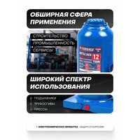 Домкрат обладает высокой грузоподъемностью до 12 тонн, что делает его идеальным выбором для подъема различных типов автомобилей, включая грузовики и внедорожники.