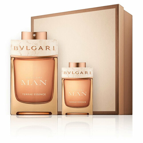 Bvlgari Man Terrae Essence - это парфюмерный набор, состоящий из двух флаконов по 100 и 15 мл каждый.