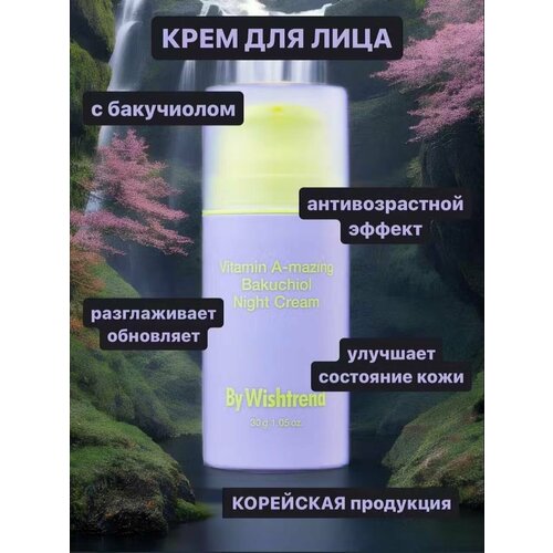 Ночной крем с ретинолом и бакучиолом By Wishtrend Vitamin A-mazing Bakuchiol Night Cream увлажняет, борется с первыми признаками возрастных изменений, стимулирует обновление клеток, разглаживает, улучшает текстуру и состояние кожи. Подходит для чувствительной кожи, не содержит отдушек, красителей и этанола, не нарушает pH-баланс. Способ применения: нанесите средство на сухое лицо после очищения, тонизации и использования сыворотки. Рекомендуется использовать в качестве ночного ухода, а при использовании днем — наносить средство с SPF.