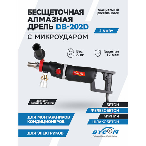 BYCON Бесщеточная дрель алмазного бурения с микроударом DB-202D 2600 Вт для сухого и мокрого сверления бетона: сравнение цен, характеристики, фото, актуальное наличие и цены.