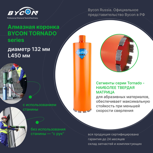 BYCON Коронка алмазная 132 х 450 мм TORNADO по бетону, кирпичу, железобетону для сухого и мокрого сверления: сравнение цен, характеристики, фото, актуальное наличие и цены.