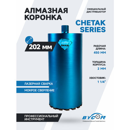 BYCON Коронка алмазная 202 х 450 мм CHETAK по бетону, кирпичу, железобетону для сухого и мокрого сверления: сравнение цен, характеристики, фото, актуальное наличие и цены.