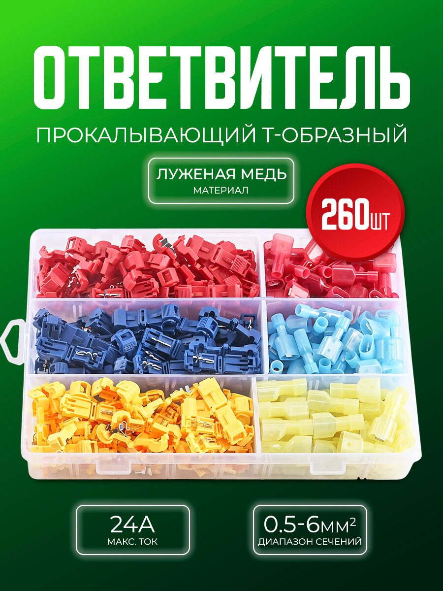 Купить Быстроразъемные соединители клеммы Т-образные 260 шт с доставкой по всей России. Быстроразъемные соединители клеммы Т-образные 260 шт: сравнение цен, характеристики, фото, актуальное наличие и цены.