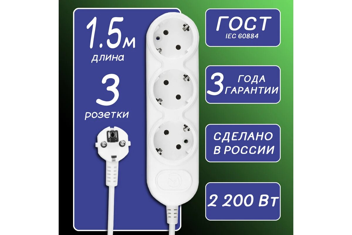 Купить Бытовой удлинитель Power Cube 3р с/з, без выкл. 2200 Вт, 10 А, 1.5 м 30,75 (белый) PC-3-1,5M с доставкой по всей России.
