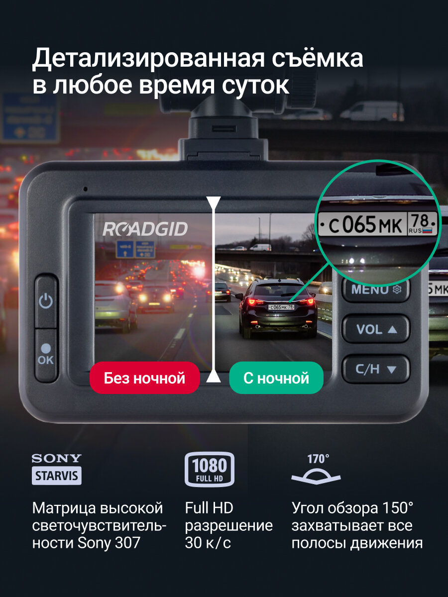 Купить Видеорегистратор с радар-детектором для автомобиля Roadgid Optima GT с ночной съемкой и Wi-Fi с доставкой по всей России.