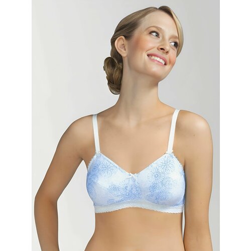 Ортопедический бюстгальтер из лимитированной коллекции от Amoena, размер 90A/B, цвет голубой принт на экрю, для женщин после операции на груди.