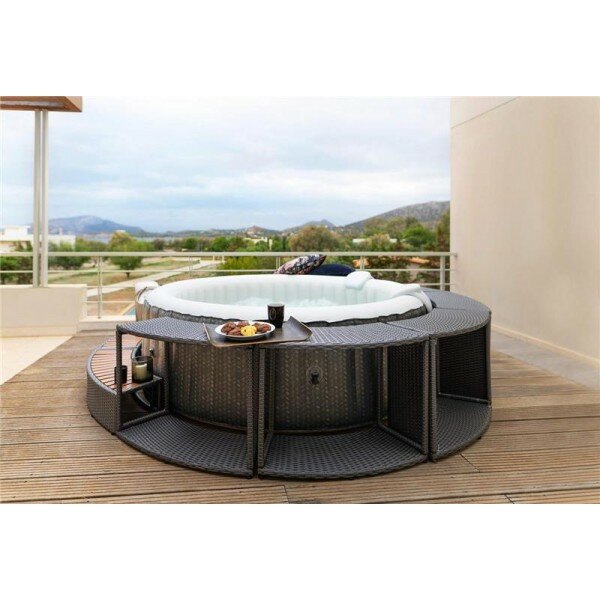 Надувной СПА-бассейн MSPA COMFORT Ottoman Round Bubble Spa от ведущего мирового производителя надувных СПА-бассейнов компании M-Spa.Размеры 204х70см, объем 930 л. СПА-бассейн предназначен для активного купания 6 человек, подходит для использования как в помещении, так и на открытом воздухе. Материал чаши изготовлен из высококачественного плотного многослойного ПВХ с антибактериальным покрытием. Внешняя расцветка чаши имитирует плетение из ротанга. Внутренняя конструкция чаши надежная и безопасная, не деформируется и устойчива к разрыву.СПА оснащена массажной системой состоящей из 138 воздушных форсунок по периметру бассейна. Мощность воздушного насоса 600 Вт. Система оборудована нагревателем воды мощностью 1.5 Квт, что обеспечит комфортную температуру в СПА-бассейне в любое время года. Скорость нагрева воды составляет 1.2-1.8С в час. В комплекте встроенный фильтр-насос для поддержания чистоты воды и фильтрации от мелкого мусора и взвесей со встроенной ультрафиолетовой установкой для обеззараживания воды. Мощность ультрафиолетовой установки 2000 мкВт. Блок управления имеет проводной пульт для управления системой, а также оборудован таймером включения и выключения для экономии энергии. Система имеет защиту от детей. Для эксплуатации в холодное время года есть защита от обледенения.