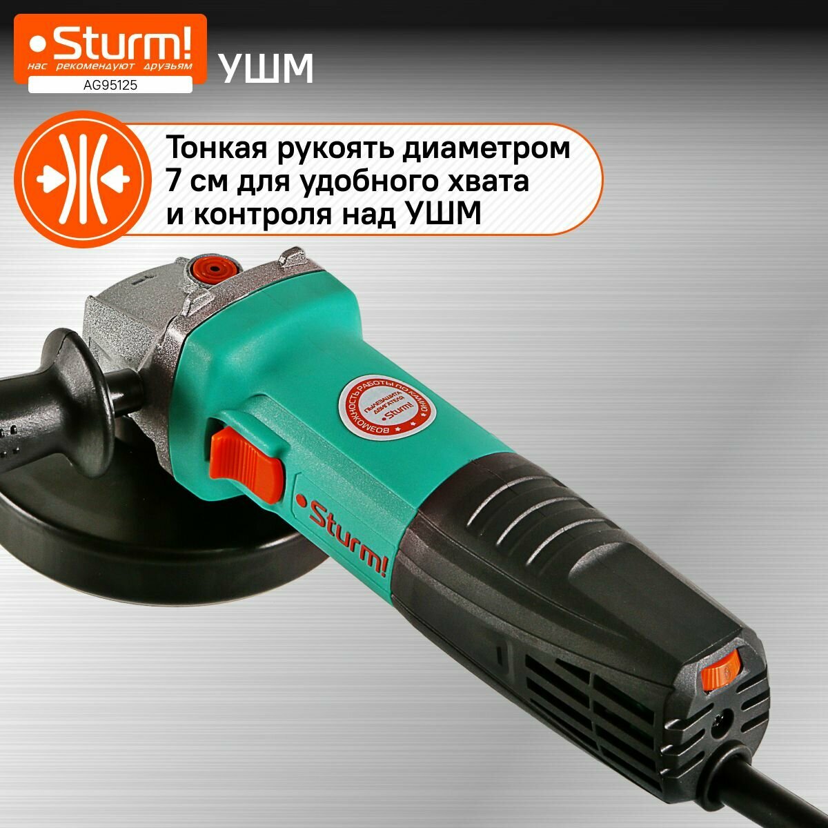 Купить C2 Болгарка электрическая (УШМ) Sturm! AG95125 с регулировкой оборотов, 125 мм, 900 Вт, 10000 об/мин с доставкой по всей России.