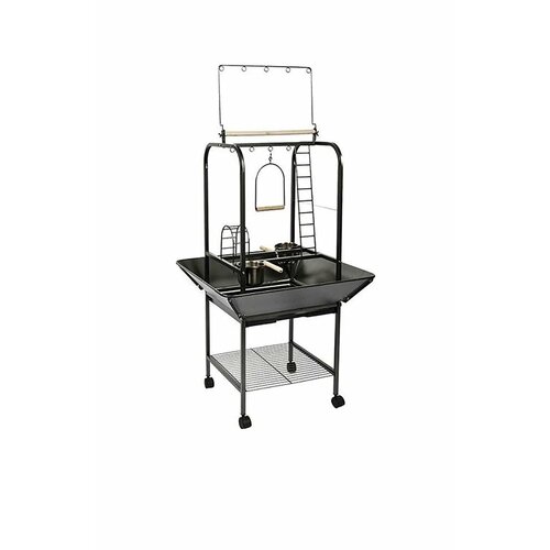 Оригинальная и стильная присада для крупных и средних птиц. Высокопрочная стальная конструкция с покрытием экоэмаль. Присада оснащена колесами для перевозки. Усиленный каркас выполнен из стали с покрытием «Экоэмаль». Для Вашего удобства внизу есть полочка для инвентаря и крылья от мусора. На модульном подвесе можно разместить любимые игрушки Вашего питомца. В комплекте: 1 жердочка, 1 качеля, 2 металлических кормушки повышенной емкости для влажных и сухих кормов. Подходит для выгула какарика, жако, кореллы, ары, какаду, розеллы и других крупных и средних птиц.