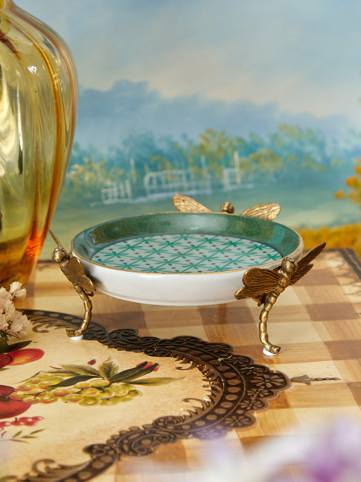 C383/HLG2204 Блюдо на стрекозах 13х13х6см, Фарфор, бронза, Glasar