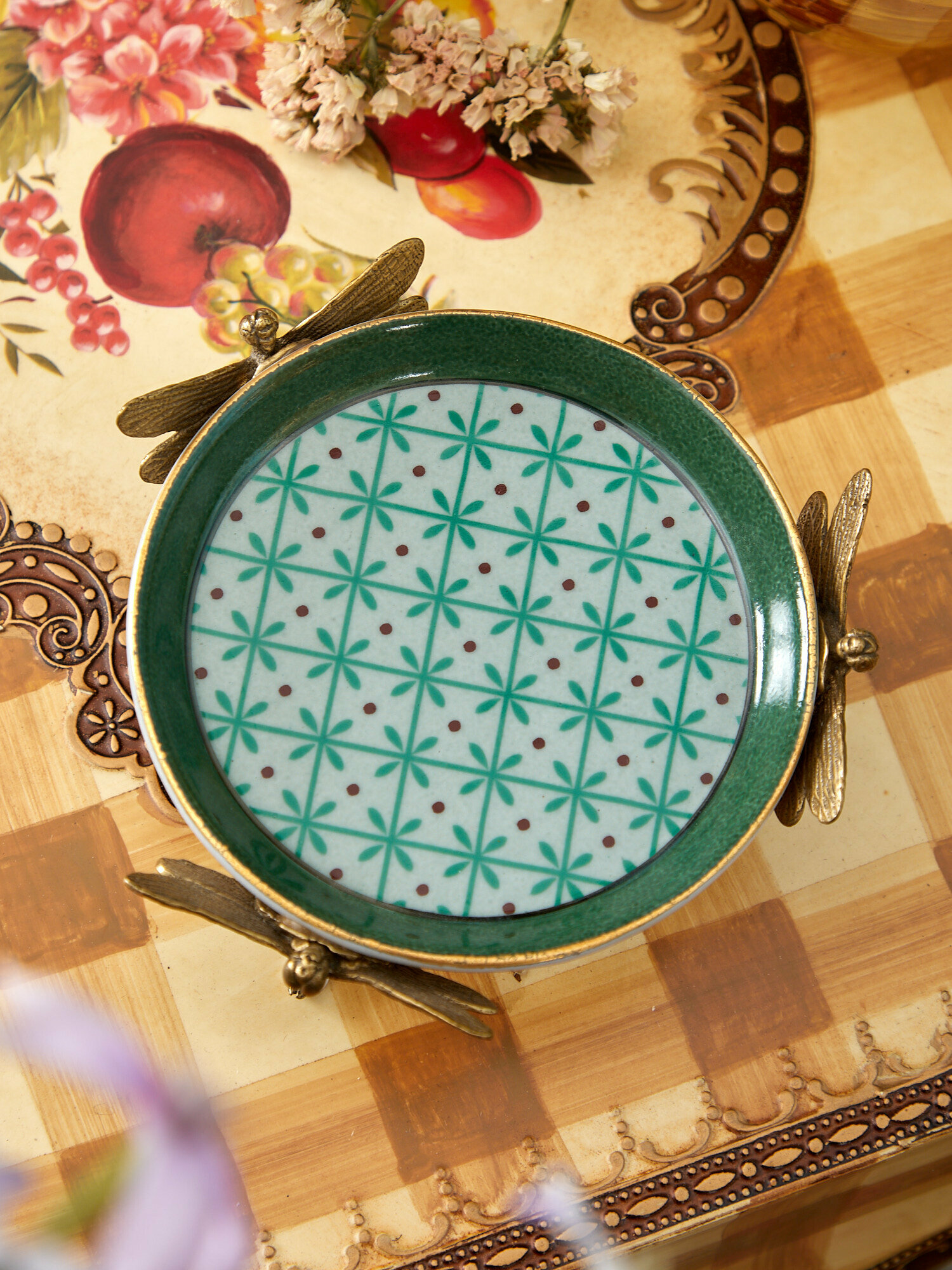 31G2574/C914HC/HBK1041 Блюдо со стрекозами 21х21х9см, Фарфор, бронза, Glasar