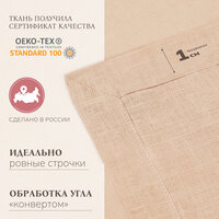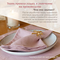 Ткань прошла умягчение и усадку на производстве, что гарантирует сохранение формы и цвета после многократных стирок. Размер 40х40см идеально подходит для стандартных тарелок. Сертификат качества ткани OEKO-TEX STANDARD и декларация соответствия изделия подтверждают безопасность использования. Обработка угла "конвертом" и ровные строчки придают салфеткам элегантный вид. Cшиты в России.