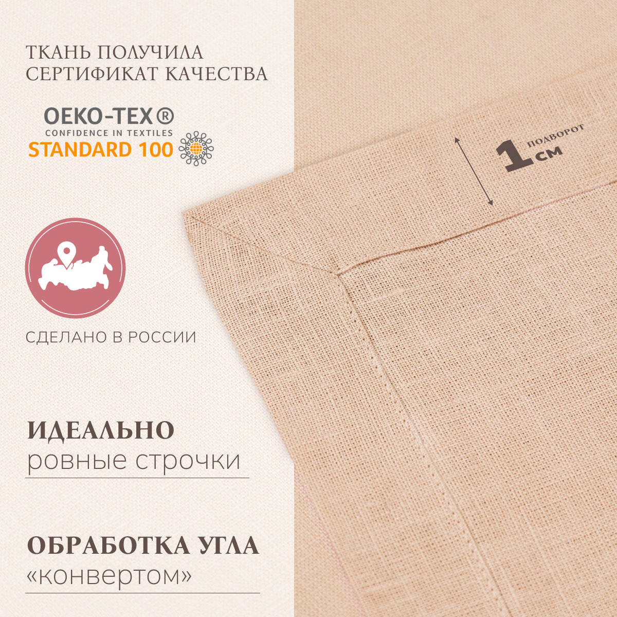 Плотность ткани 180−190 г/кв. см (лен средней плотности).