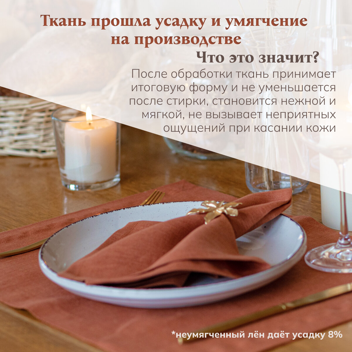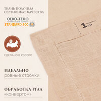 Ткань прошла умягчение и усадку на производстве, что гарантирует сохранение формы и цвета после многократных стирок. Размер 40х40см идеально подходит для стандартных тарелок. Сертификат качества ткани OEKO-TEX STANDARD и декларация соответствия изделия подтверждают безопасность использования. Обработка угла "конвертом" и ровные строчки придают салфеткам элегантный вид. Cшиты в России.