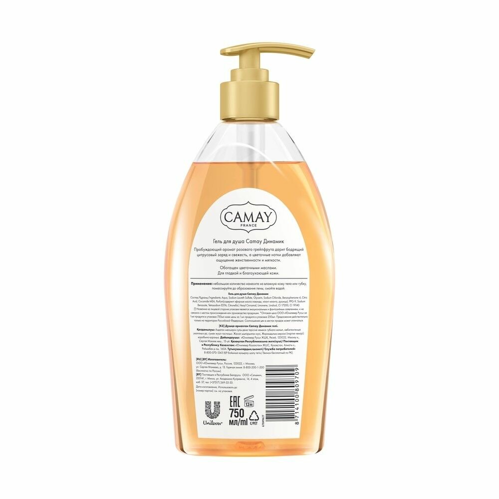 Camay Гель для душа Dynamique, 750 мл, 4 шт: сравнение цен, характеристики, фото, актуальное наличие и цены.