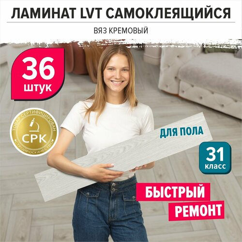 Купить Кварц виниловый LVT ламинат под дерево для пола самоклеящийся влагостойкий Bazzart «Вяз кремовый» 914х152мм 36 шт. с доставкой по всей России.