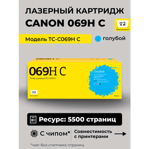 Лазерный картридж T2 TC-C069H C для принтеров Canon i-SENSYS LBP673Cdw, Canon i-SENSYS MF752Cdw, Canon i-SENSYS MF754Cdw . Замена картриджа: Canon Cartridge 069H C/5097C002AA. Картридж собран из дорогих японских комплектующих, протестирован по стандартам STMC и ISO. Наши люди на заводе следят за всеми аспектами сборки, вплоть до крутящего момента при закручивании винтов. С каждого картриджа на заводе делаются тестовые отпечатки.