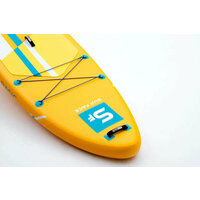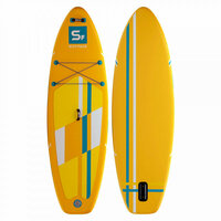 Производится по технологии Shark SUPs. Выполнена из высокотехнологичного материала Drop-Stitch. Классический рокер. Яркий жёлтый плавник дельфин 9". Сочные, заметные плавники не потеряются в траве. Противоскользящий коврик с текстурой «крокодил», чтобы ноги не уставали при длительной гребле. Прочная карго-сетка, чтобы взять с собой на прогулку все необходимые вещи. Прочные и удобные ручки на носу и в середине доски для комфортной транспортировки. Трёхчастное весло алюминий-нейлон с цветной лопаткой в комплекте.