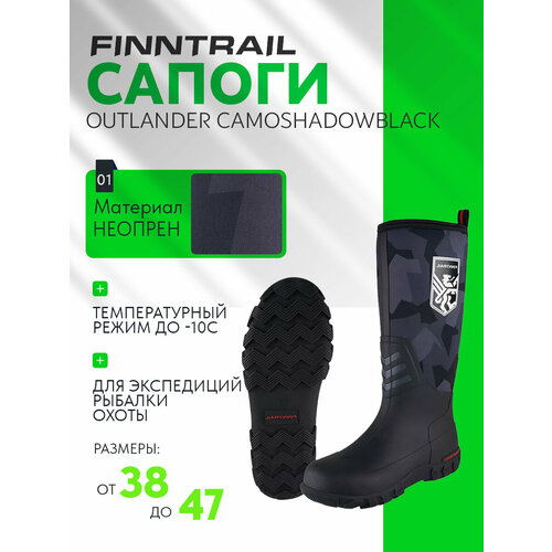 Cапоги резиновые Finntrail Outlander 7516 (CamoShadowBlack, 12/45) неопреновые для офф-роуд, рыбалки, охоты, похода: сравнение цен, характеристики, фото, актуальное наличие и цены.