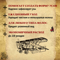 Аромат воска - очень тонкий и изысканный, состоит из тонизирующих нот кедра, черного перца, теплых пачули и пальмарозы. Помещен в металлическую винтовую баночку, которая легко поместится в карман и позволит держать его теплым, чтобы в любой момент времени поправить форму усов и добавить капельку стиля в Ваш образ.