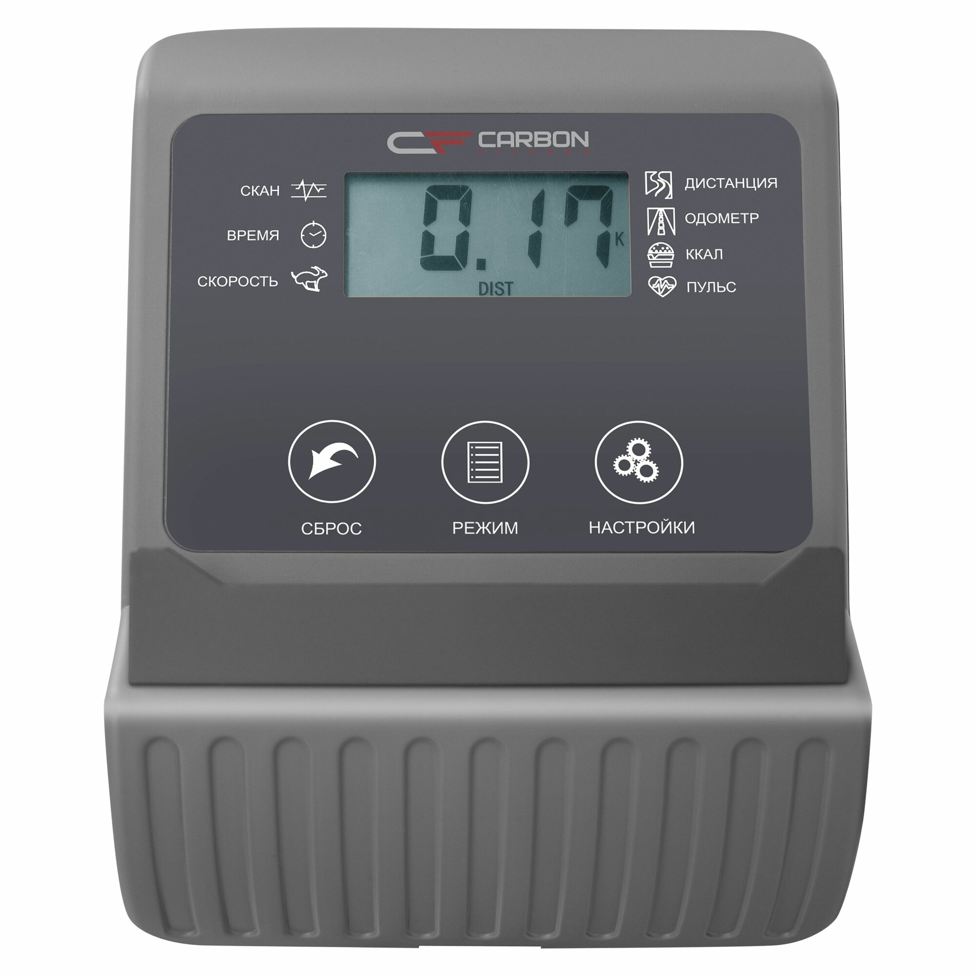 Тренировочный компьютер представлен LCD-дисплеем с монохромной матрицей. На экран выводятся все основные параметры тренировки - время, скорость, дистанция, расход калорий, пульс, одометр. Также есть 4 встроенные программы, направленные на целевые тренировки по времени, дистанции, расходу калорий и пульсу. Нагрузка регулируется механическим путем в 8 положениях.