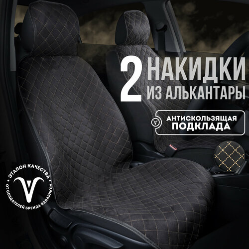CarCape/ Накидки чехлы на авто из алькантары комплект на передние сиденья машины 2шт. Черный, бежевая строчка: сравнение цен, характеристики, фото, актуальное наличие и цены.