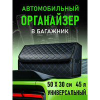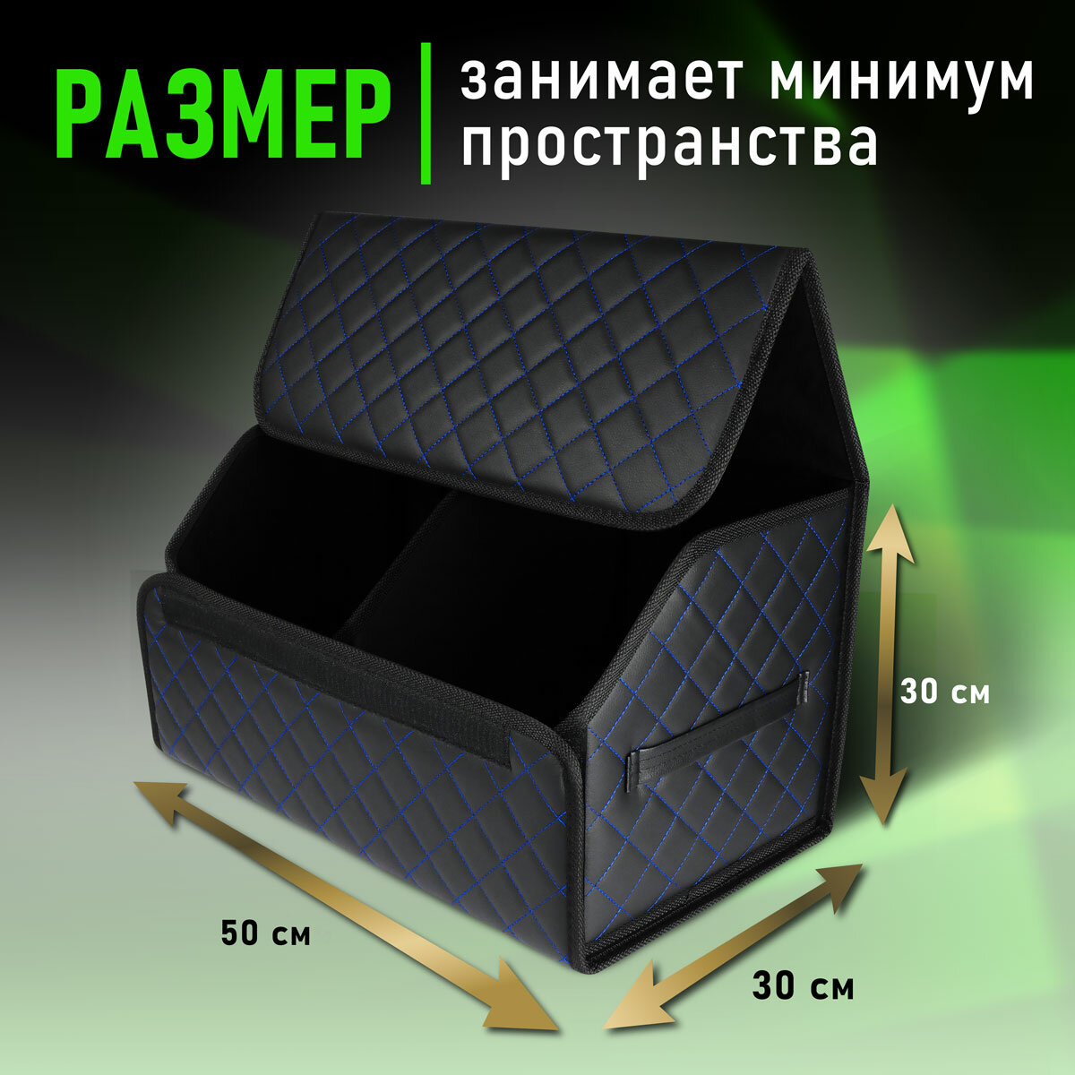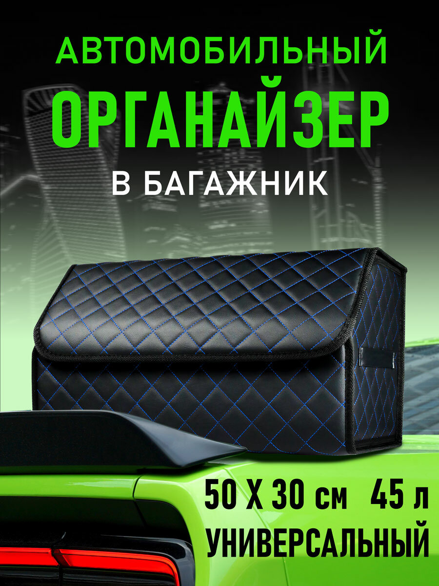 Купить CarCape/Органайзер в багажник автомобиля. Автомобильный бокс для хранения. Модель Classic ромб 50*30см/ Черный, синяя строчка с доставкой по всей России.