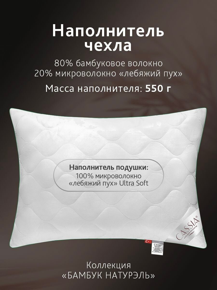 CASSIA Подушка для сна 50х70 «Бамбук Натурэль» стеганая, бамбуковое волокно, микроволокно «Лебяжий пух»: сравнение цен, характеристики, фото, актуальное наличие и цены.