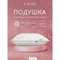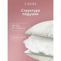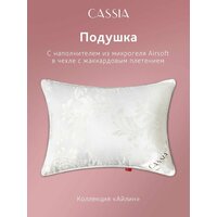 Подушка «Айлин» 50х70 см бренда CASSIA имеет чехол из 50% хлопка, 50% вискозного шелка; жаккардовое плетение с классическим орнаментом; наполнитель из 100% микрогеля Airsoft.